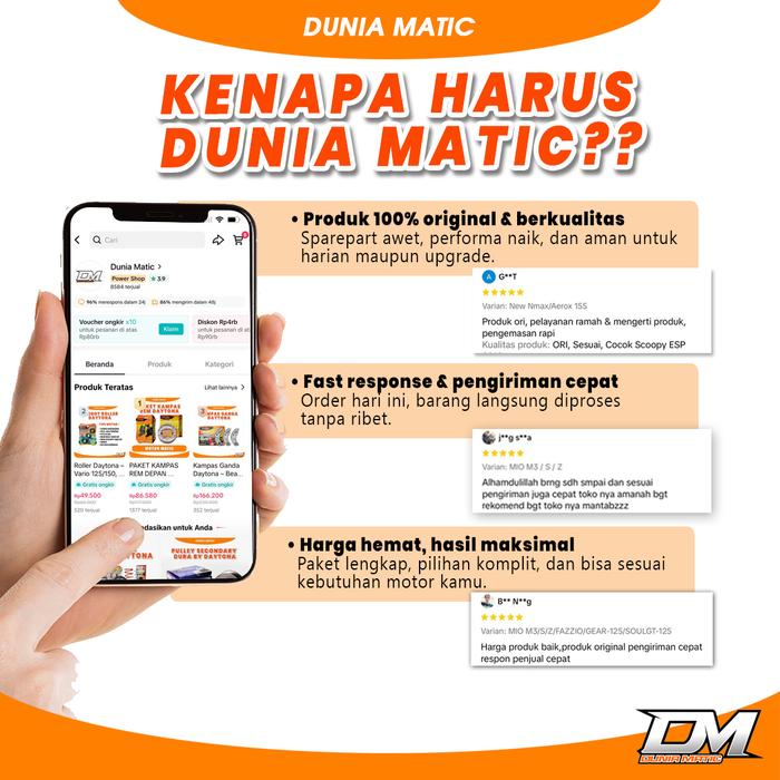 Paket Kampas Rem Depan Belakang Matic Daytona Pcx, Adv, Vario, Beat, Scoopy, Deluxe, Street, Genio, Mio, Gear 125, Mio M