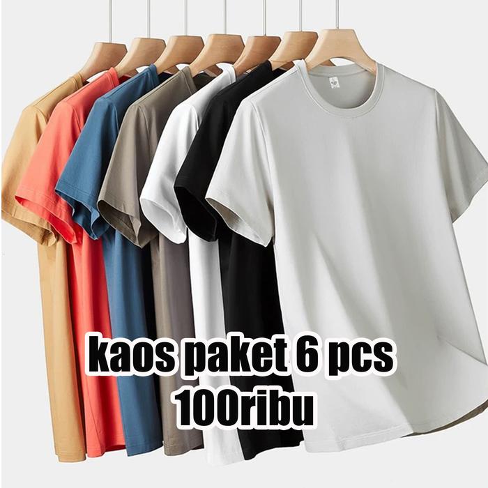 Hanesa Fashion Kaos Paket 6 Pcs Kaos Polos 24S 200Gsm Soft Handfeel Free Ongkir - Warna Gelap, M