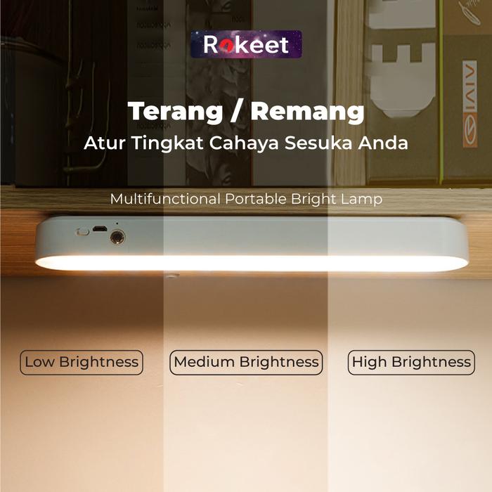 Rokeet Lampu Dinding LED Panjang Tidur Magnetic Wireless Minimalis Kamar Rumah Recharge - Putih