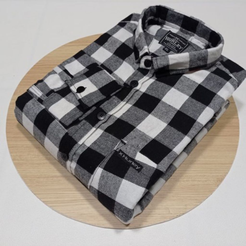 kemeja flannel unisex pria wanita lengan panjang motif kotak kotak