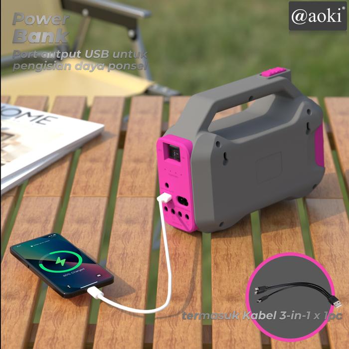 Aoki Solar Lighting Mobile Power System 8000Mah Power Bank Multifungsi Led Dc Baterai Jam Merah Ponsel Telepon Powerbank