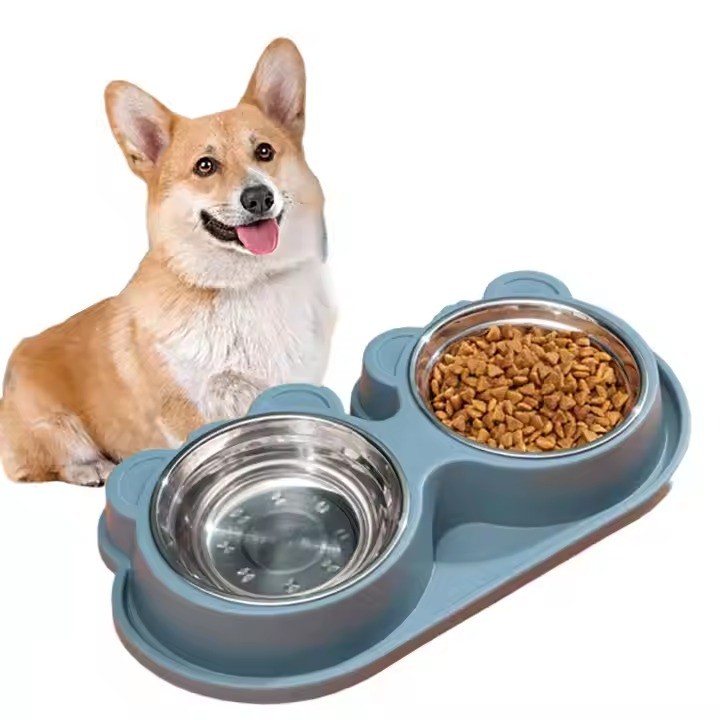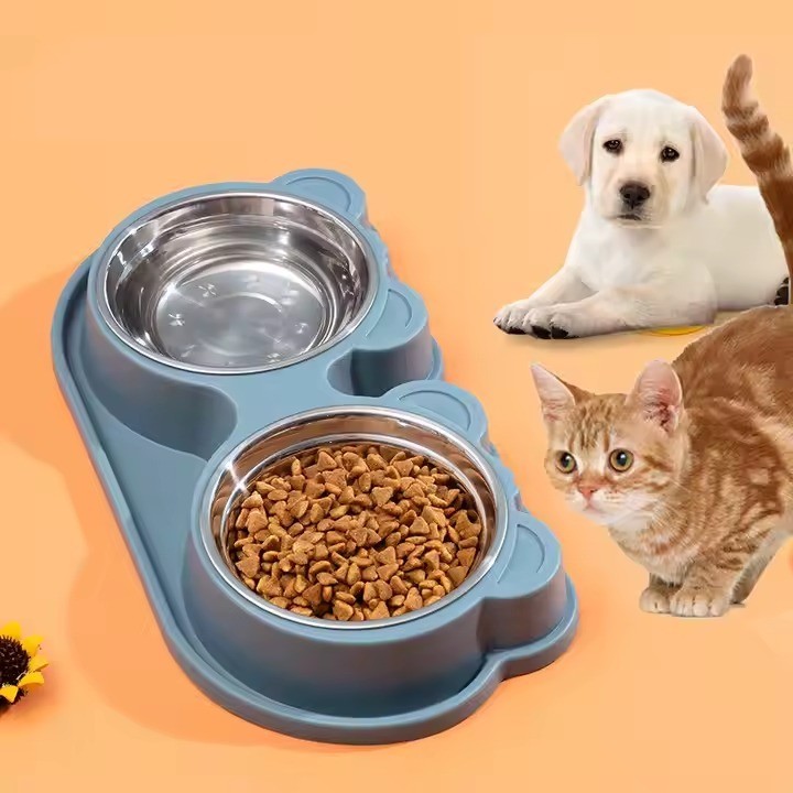 Pet Feeder Tempat Makan Minum Kucing Anjing Stainless Steel Pet bowl 2 in 1 Anti Slip