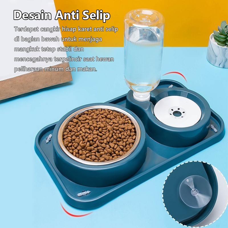 Tempat Makan Kucing Otomatis Minum dispenser Pet Feeder Plate 2 in 1 Set Anjing Kucing Kelinci