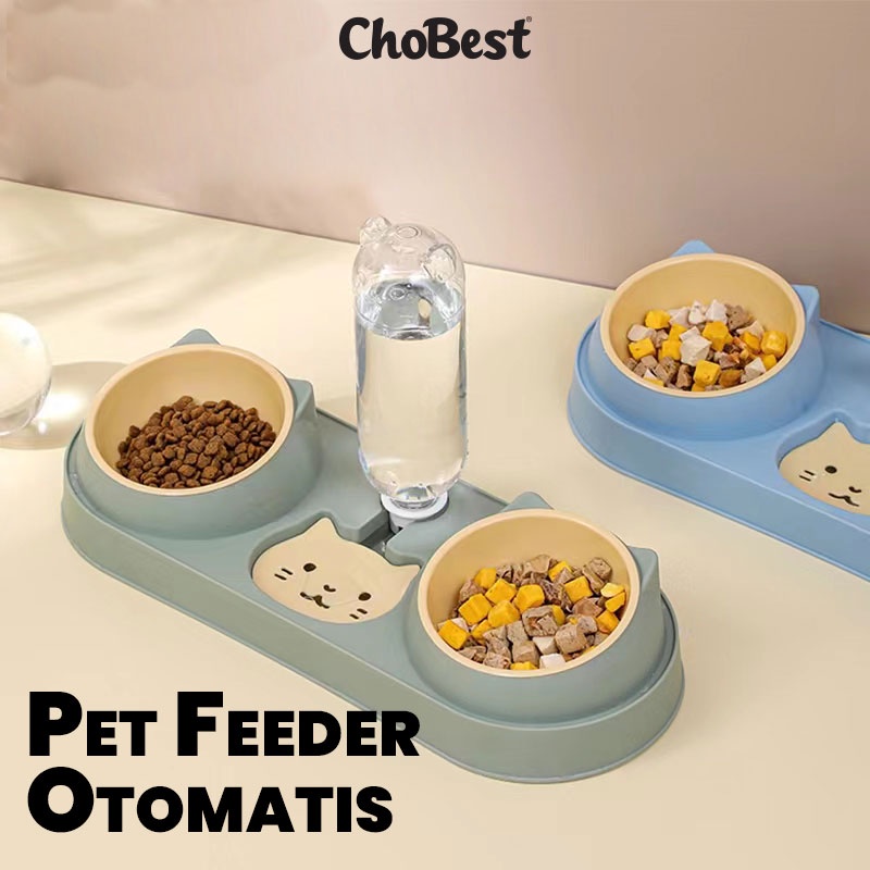 CHOBEST CW02 Pet Feeder Otomatis 2 Mangkok / Tempat Makan Minum Kucing Double Bowl Lucu
