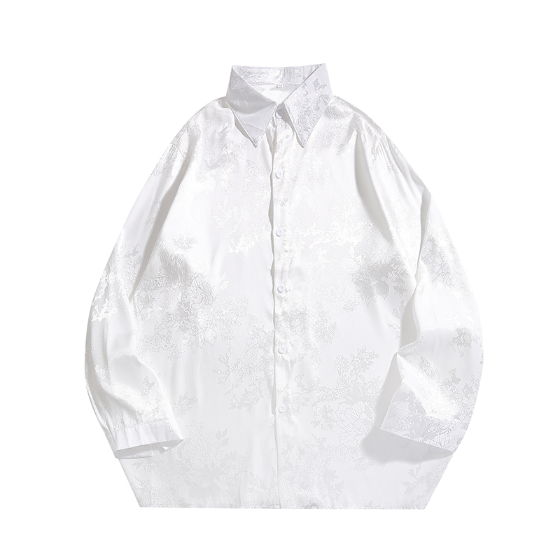 Dark Icon Kemeja Eternal Hitam Bunga Pria Oversized Satin Kemeja Pria Lengan Panjang Shirts Cowok Hitam/Putih/Beige