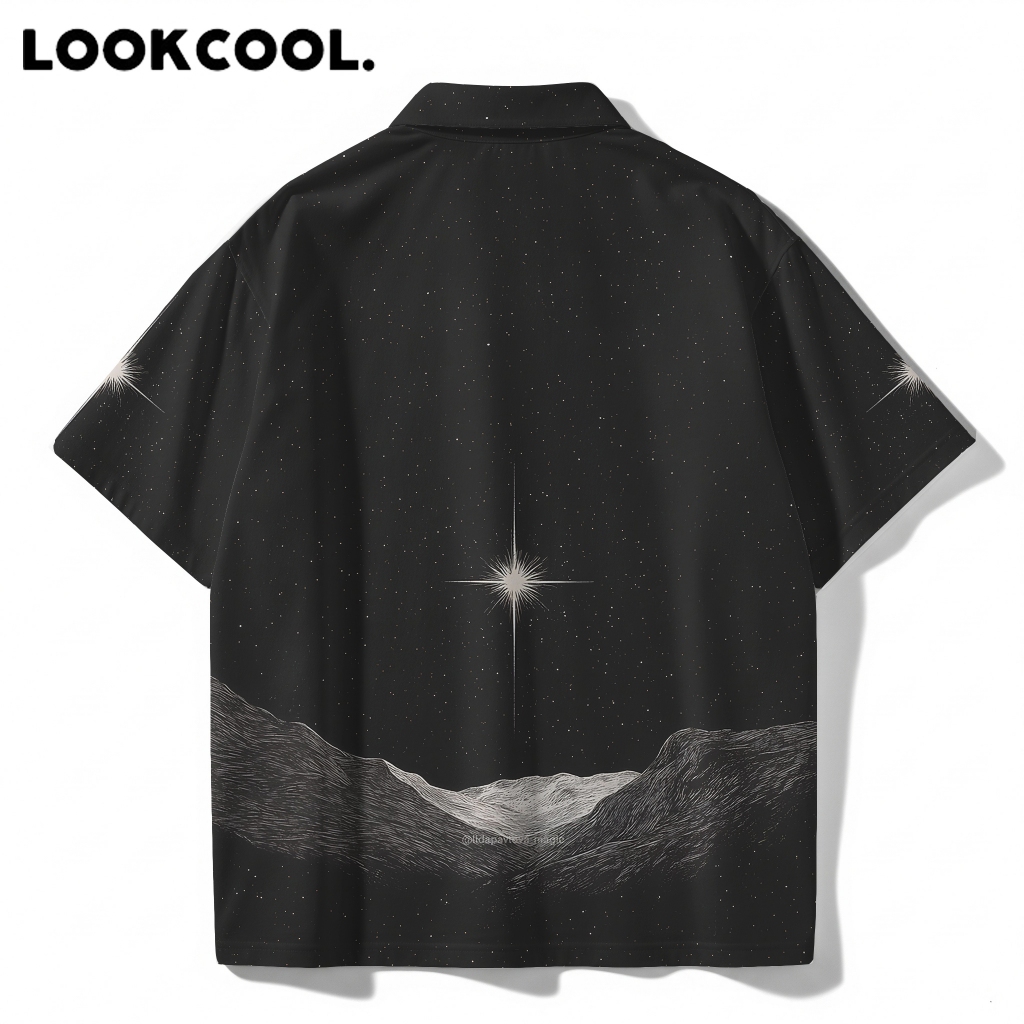 LOOKCOOL Kemeja Pria Motif Langit Bintang Pegunungan Pendek Premium