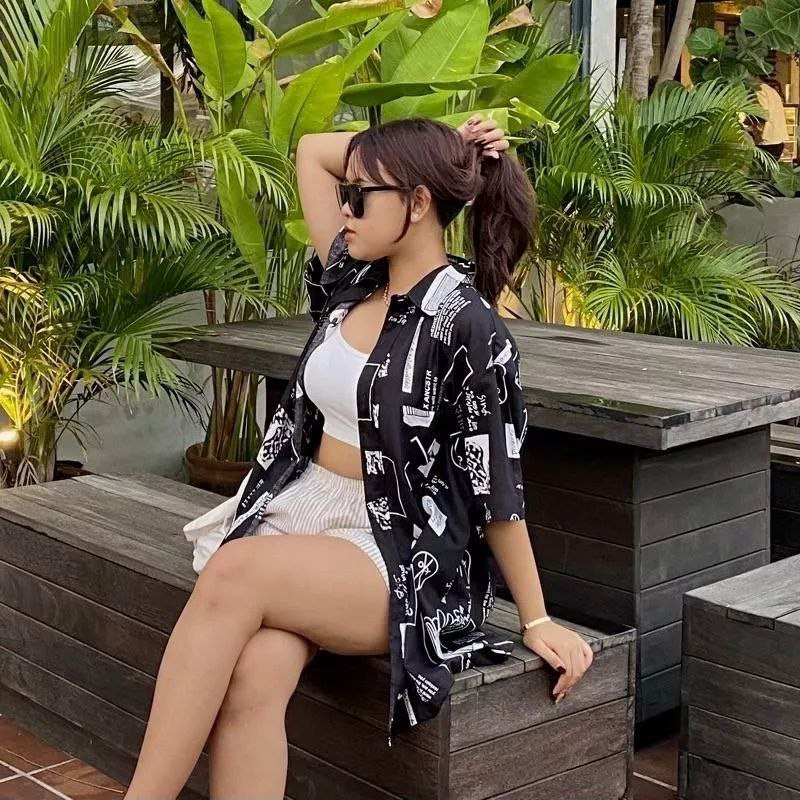 Kemeja Pria Hawai / Kemeja Pantai Abstrak Vintage Casual Lengan Pendek