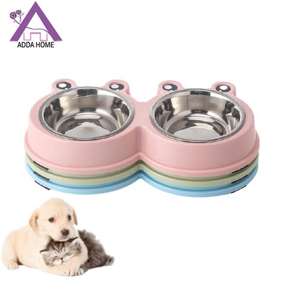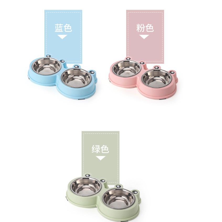 Tempat Makan Minum Hewan Anjing Kucing Kelinci Stainless Bentuk Kodok 2 Sekat