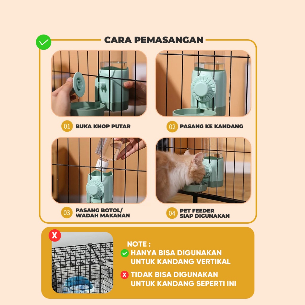 PET THERE Pet Feeder & Water Feeder Gantung M93/M94 untuk Kandang - Praktis, Awet, & Mudah Dibersihkan
