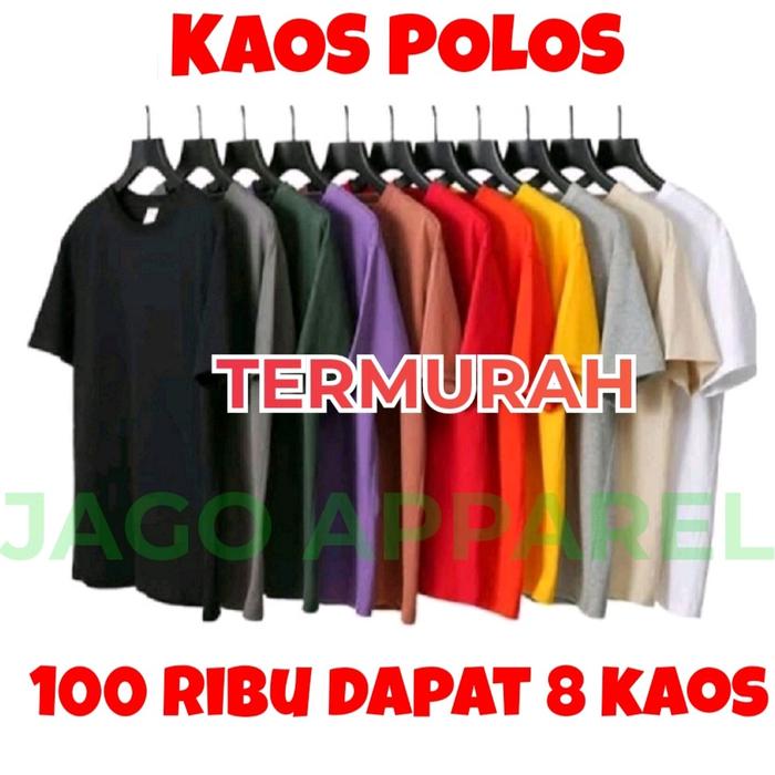 Kaos Polos 100 Ribu Dapat 8 Pcs Kaos Pria Wanita - Random/Acak, L