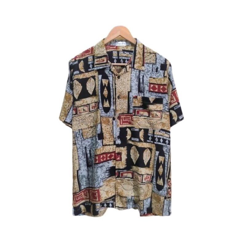 Kemeja Pria Vintage Casual Abstark Lengan Pendek Retro Pantai Hawai Unisex Aneka Motif