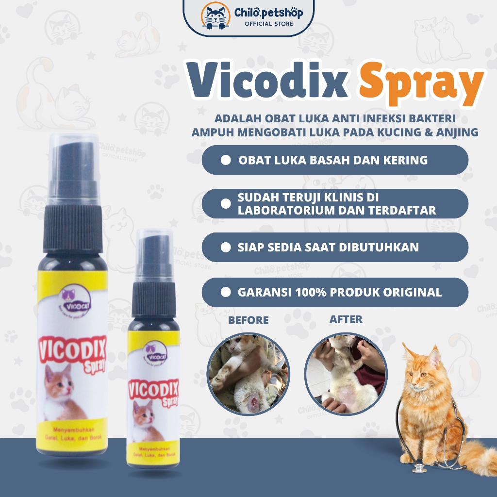 Viix Spray| Obat Luar Kucing| Mengobati Luka Basah| Luka Kering| Koreng | Gatal Jamur Scabies