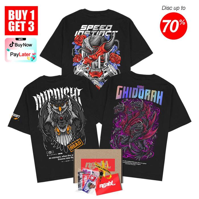 Gratis Stiker, Lanyard Buy 1 Get 3 Ngab Kaos Distro Special Bundling King Ghidorah Midnight Owl Speed Instingt Unisex
