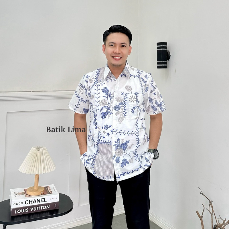 Baju Batik Pria Lengan Pendek Kemeja Laki Laki Dewasa (bordir)