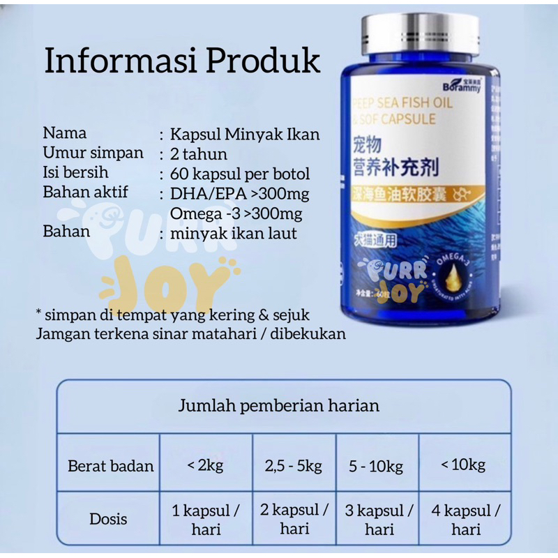 Purrjoy Fish Salmon Oil Minyak Ikan Omega 3 Untuk Anjing Kucing Isi 60 Kapsul