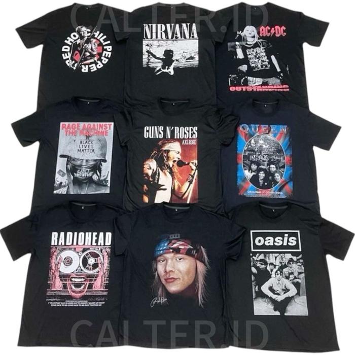 4 Pcs Kaos Distro Paket Hemat Motif Band & Non Band Semi Katun 24S - Hitam, L