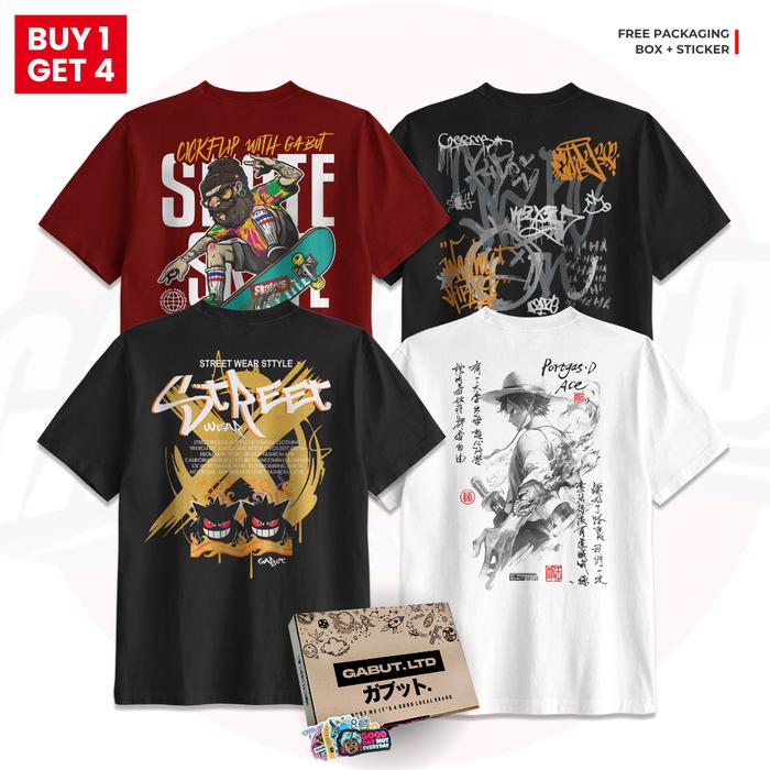 Gabut - Paket Bundling 4Pcs Baju Kaos Distro Unisex Pria Wanita Bahan Cotton Combed 24S Kaos Oblong Pria Wanita Produk