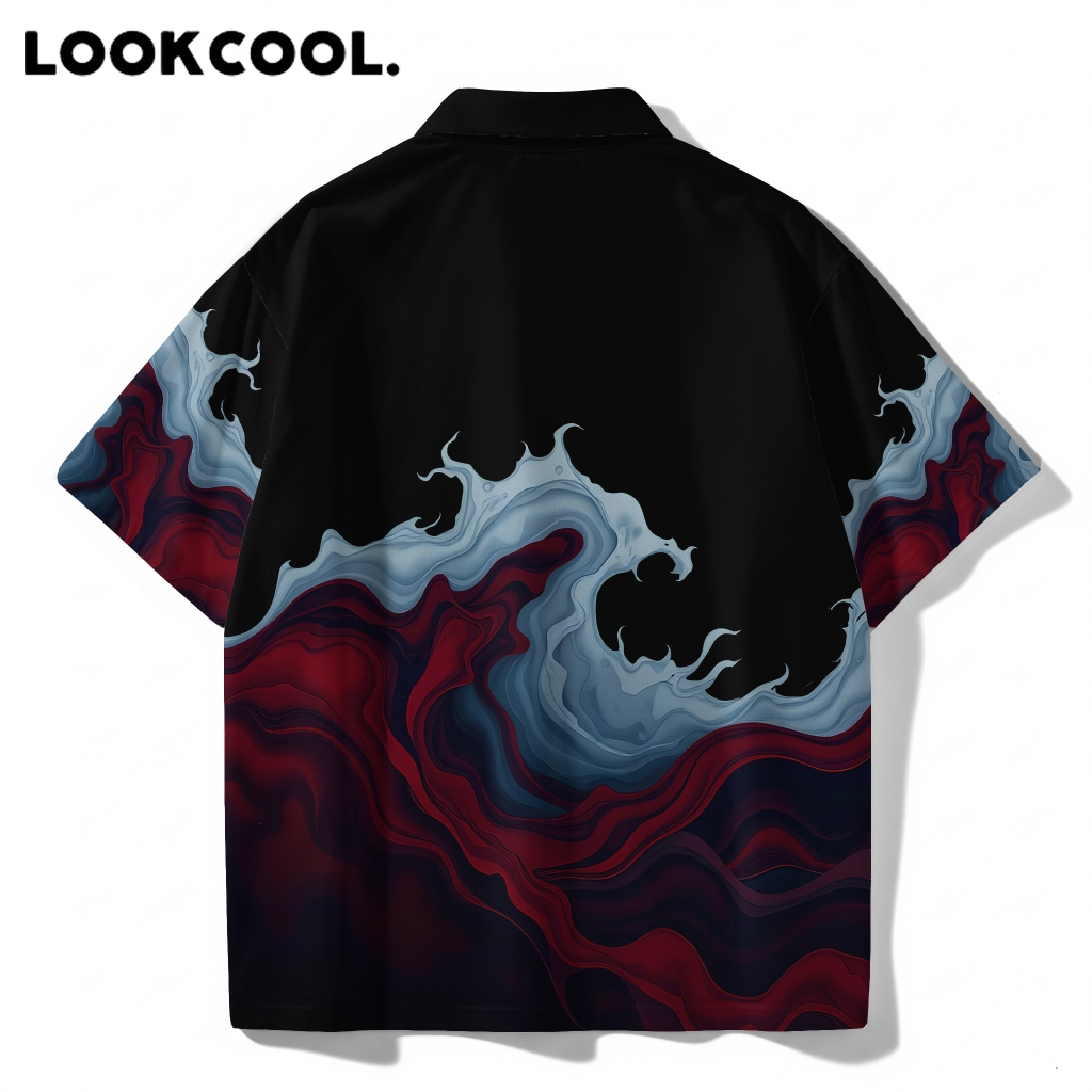 LOOKCOOL Kemeja Pria Motif Gelombang Abstrak Baju Casual Pendek Premium