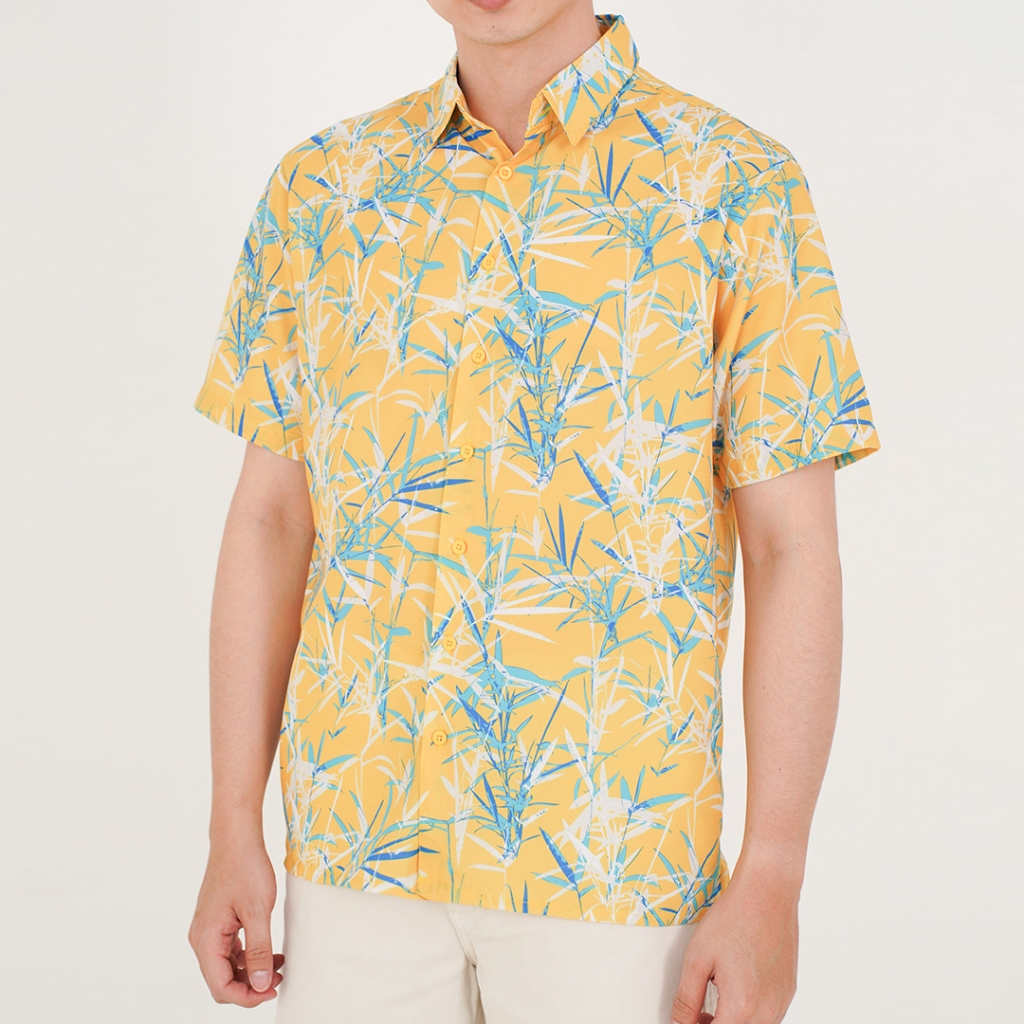 Highseas - Kemeja Pria Full Print Motif Bambu Kuning - RDYU