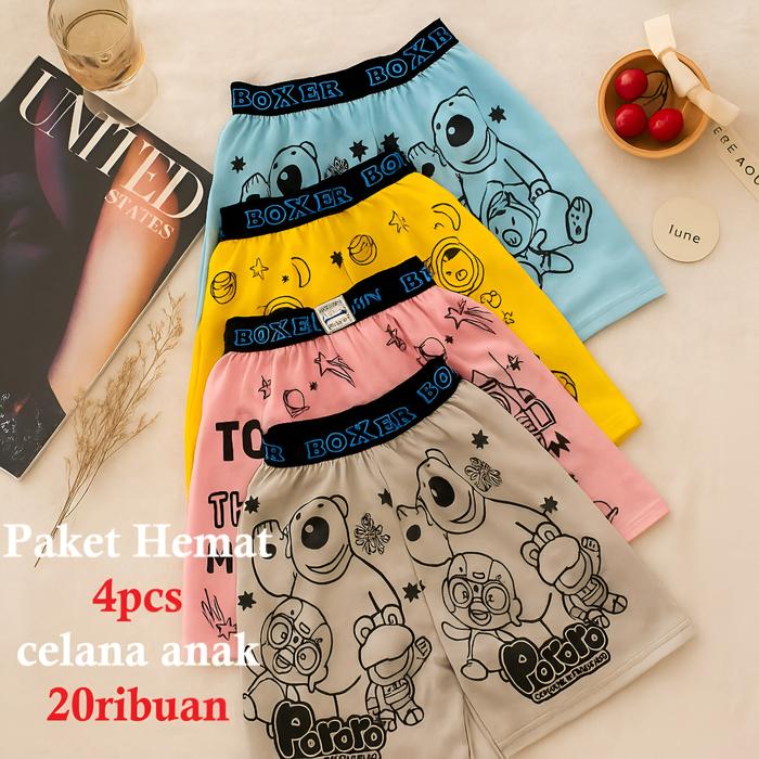 Celana Boxer Anak Paket Hemat 4Pcs Celana Anak 2-10Th/Celana Pendek Anak/Celana Santai Anak Remaja - Terang, 4Pcs 2-4 T
