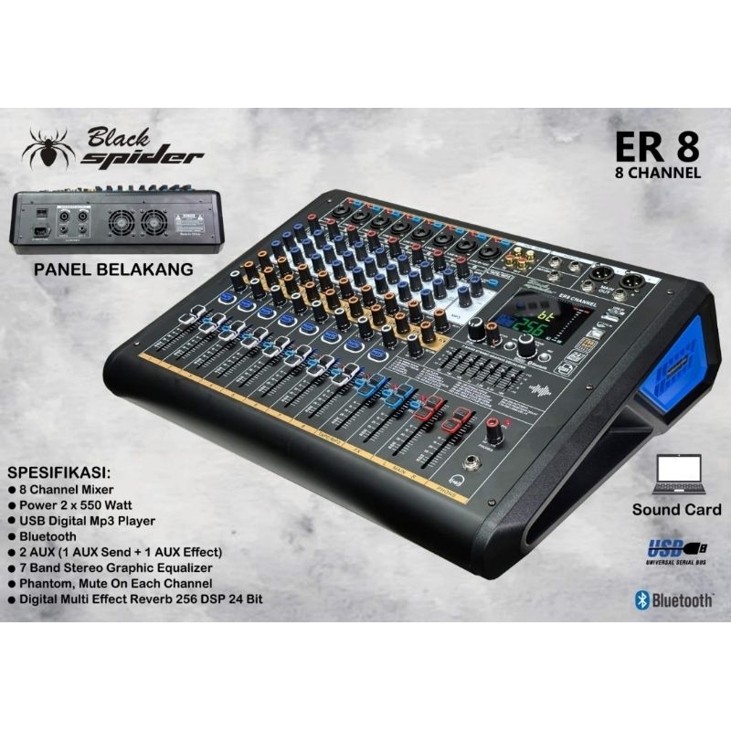 Power Mixer 8 Channel Blackspider Er8 Original Black Spider Er 8