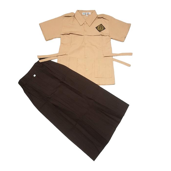 Setelan Seragam Sekolah SD Pramuka Penggalang Perempuan Lengan Pendek Rok Panjang Super Lengkap