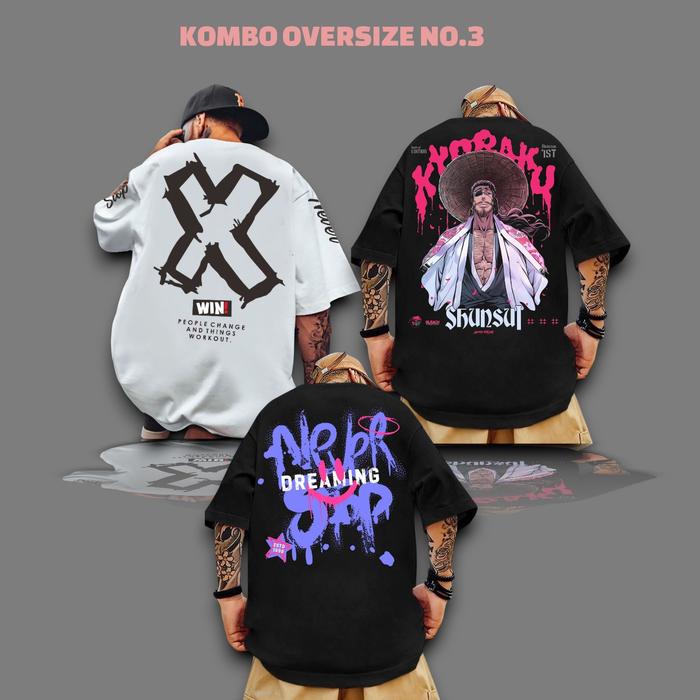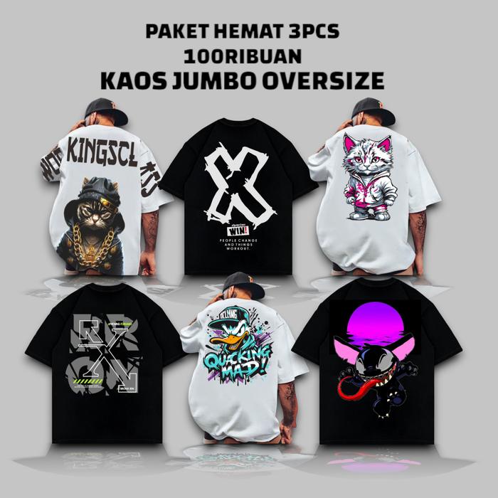 Promo Kaos Motif 3Pcs 100Ribuan Kaos Jumbo/Kaos T-Shirt Oversize Pria /Kaos Distro Viral Terpopuler - Kombo Os No.1, Xl