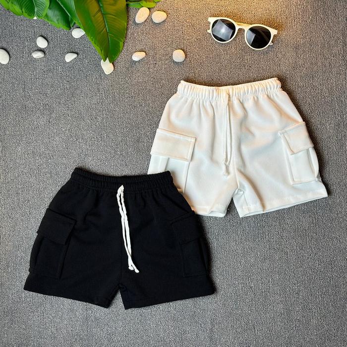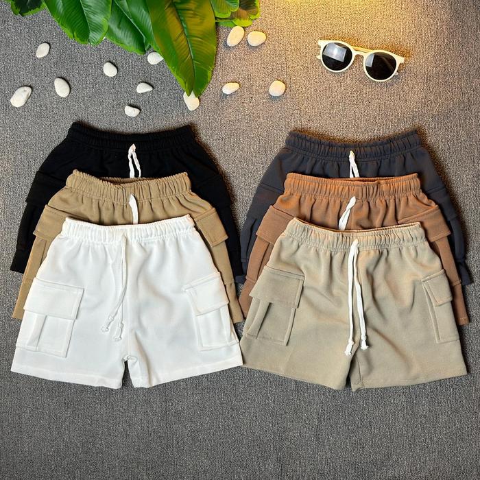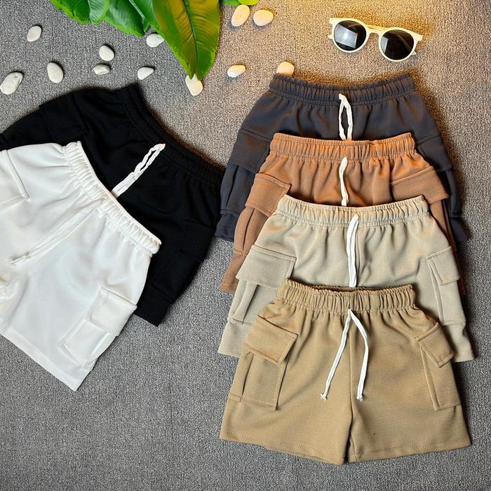 100K 4Pcs Celana Pendek Cargo Anak Unisex Melar 1-12 Tahun Laki-Laki Perempuan - Paket 4Pcs, S 5-8 Kg