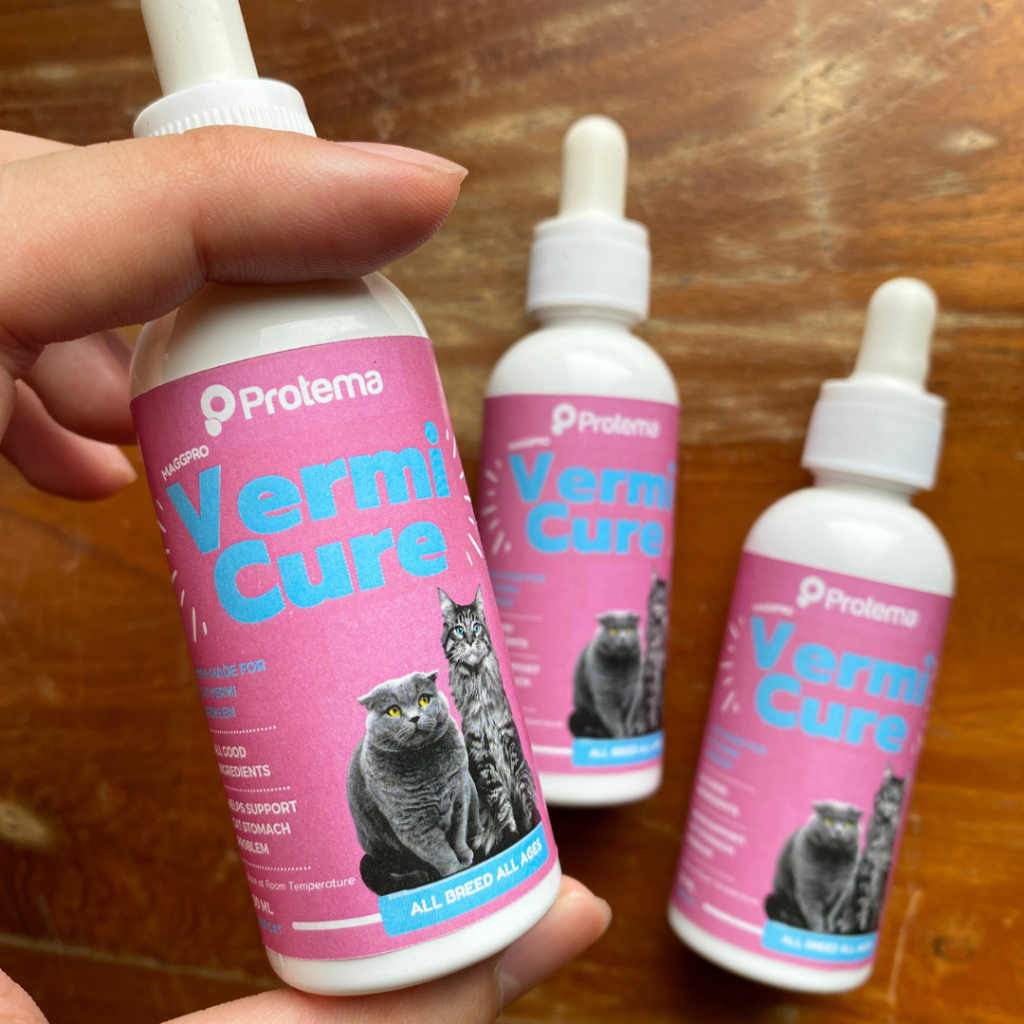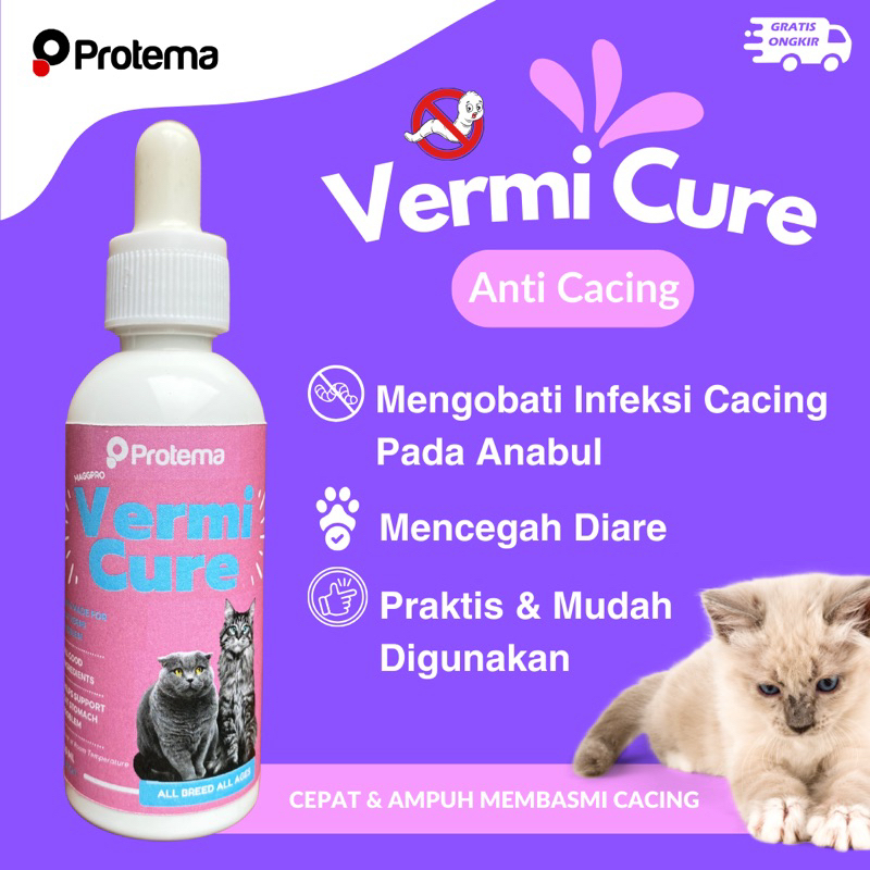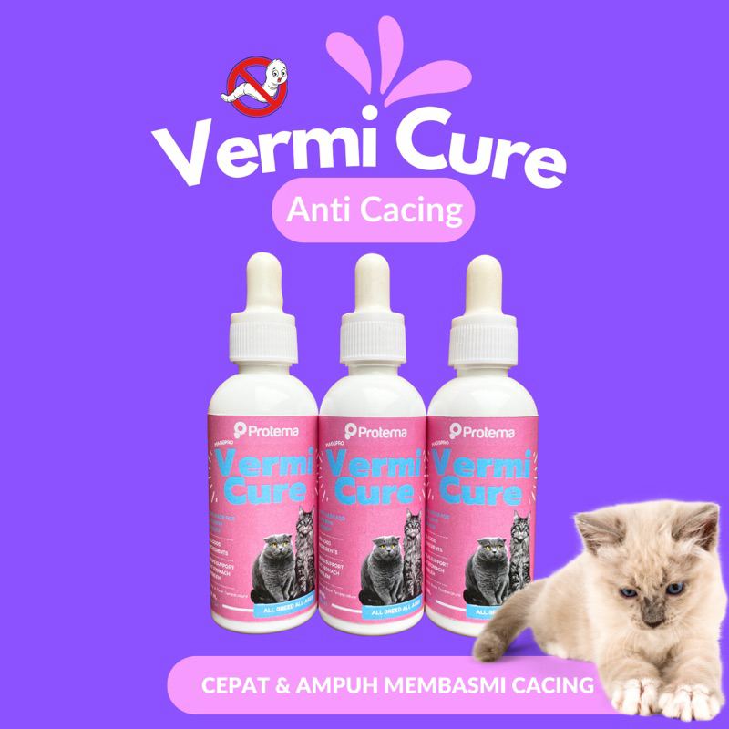 Vermi Cure | Protema | 30 Ml | Obat Cacing Kucing Ampuh Membasmi Cacing | Cegah Diare & Infeksi