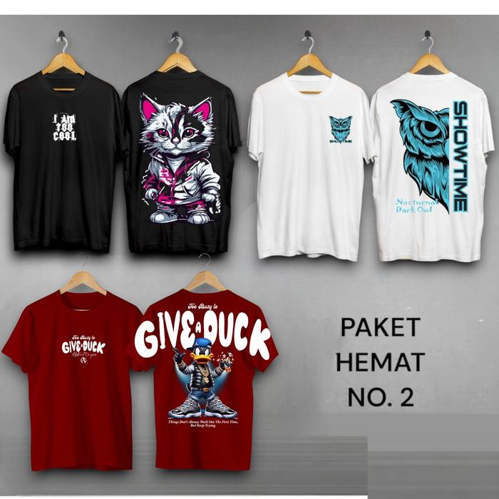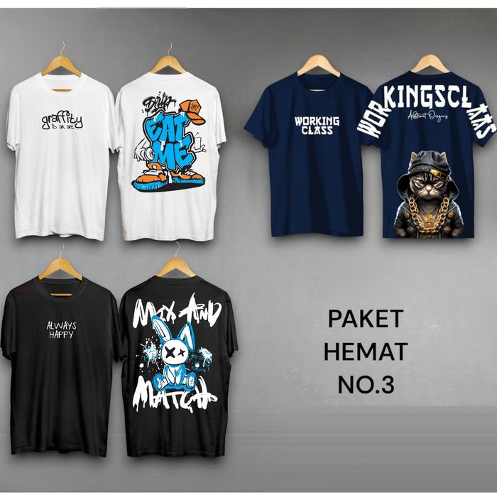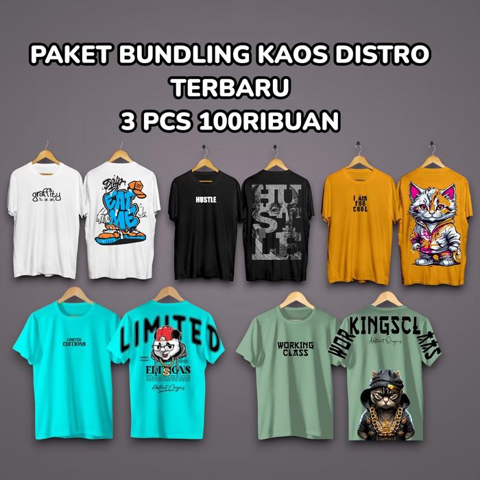 Promo 3Pcs 100Ribu Paket Bundling Kaos Distro Motif Terbaru / Kaos Combed30S / Kaos Keren - Paket No 1, M Bb 45-55Kg