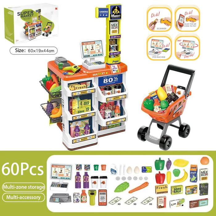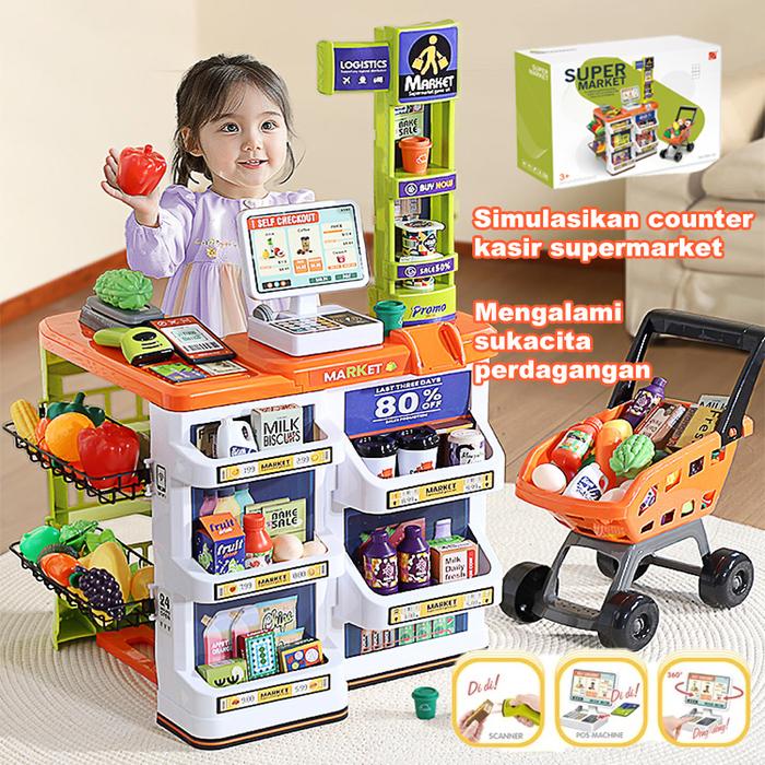 MAINAN ANAK HOME SUPERMARKET SET JUALAN DAN BELANJA SUPERMARKET TROLLEY BELANJA 82CM SIMULASI SUPERMARKET DENGAN MEJA TRANSAKSI DAN TROLLEY BELANJA ORIGINAL - A-SUPERMARKET+CAR