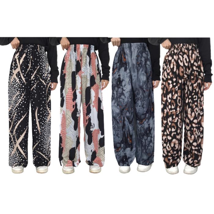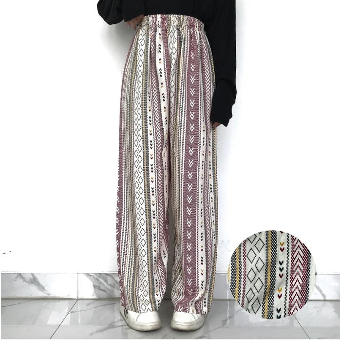 Celana Motif Wanita Kallyoutfit Rayon Kulot Panjang Part 2 Katun Linen Garis Kain - Shafa Black