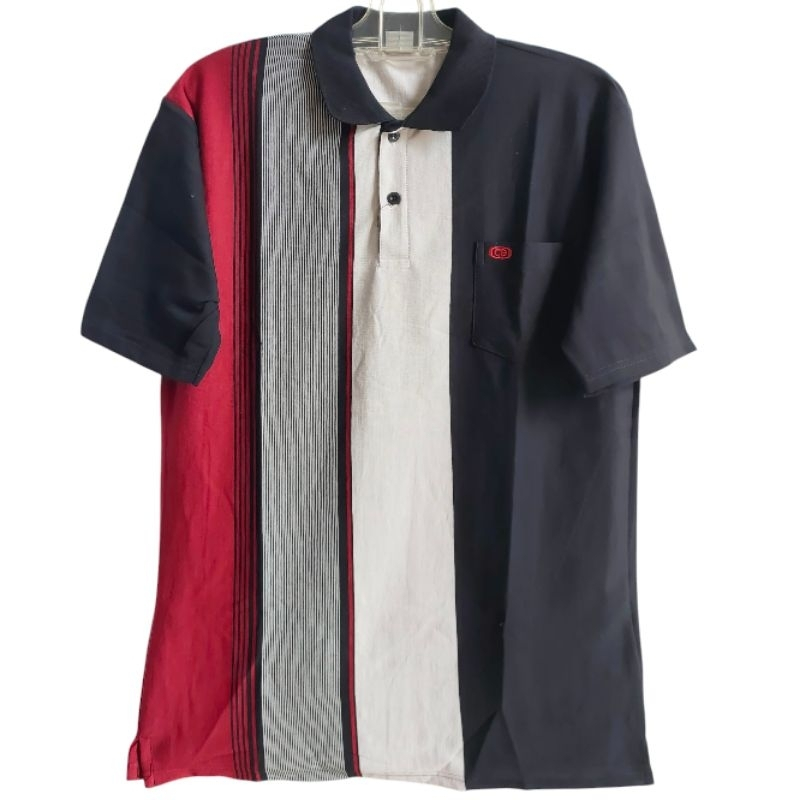 Kaos Kerah Pria Premium Dewasa Motif Salur Pendek Saku Uk M L Xl