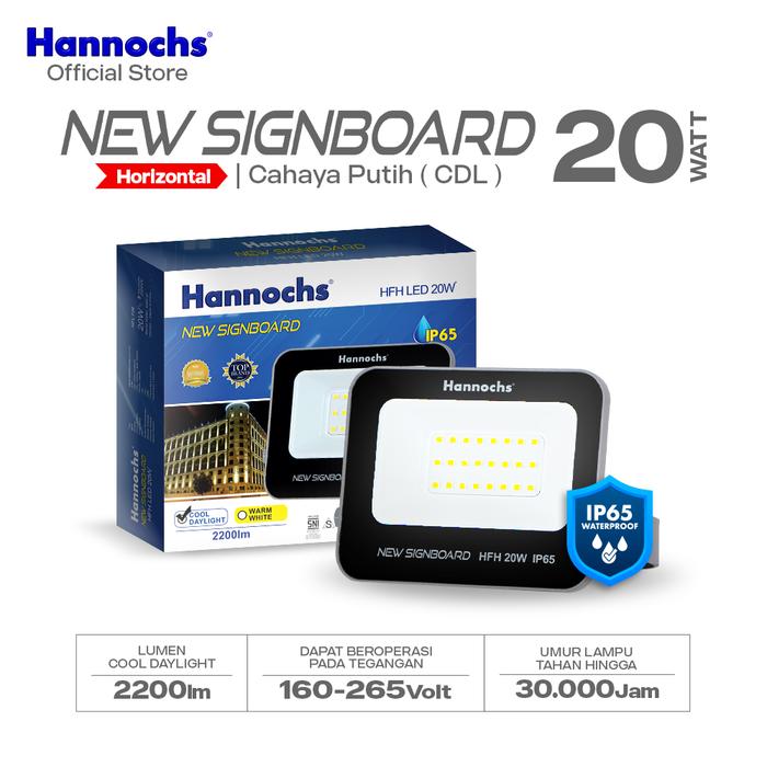 Hannochs Lampu Sorot LED New Signboard HFH 20W Cahaya Putih isi 3pcs (Model Horizontal)