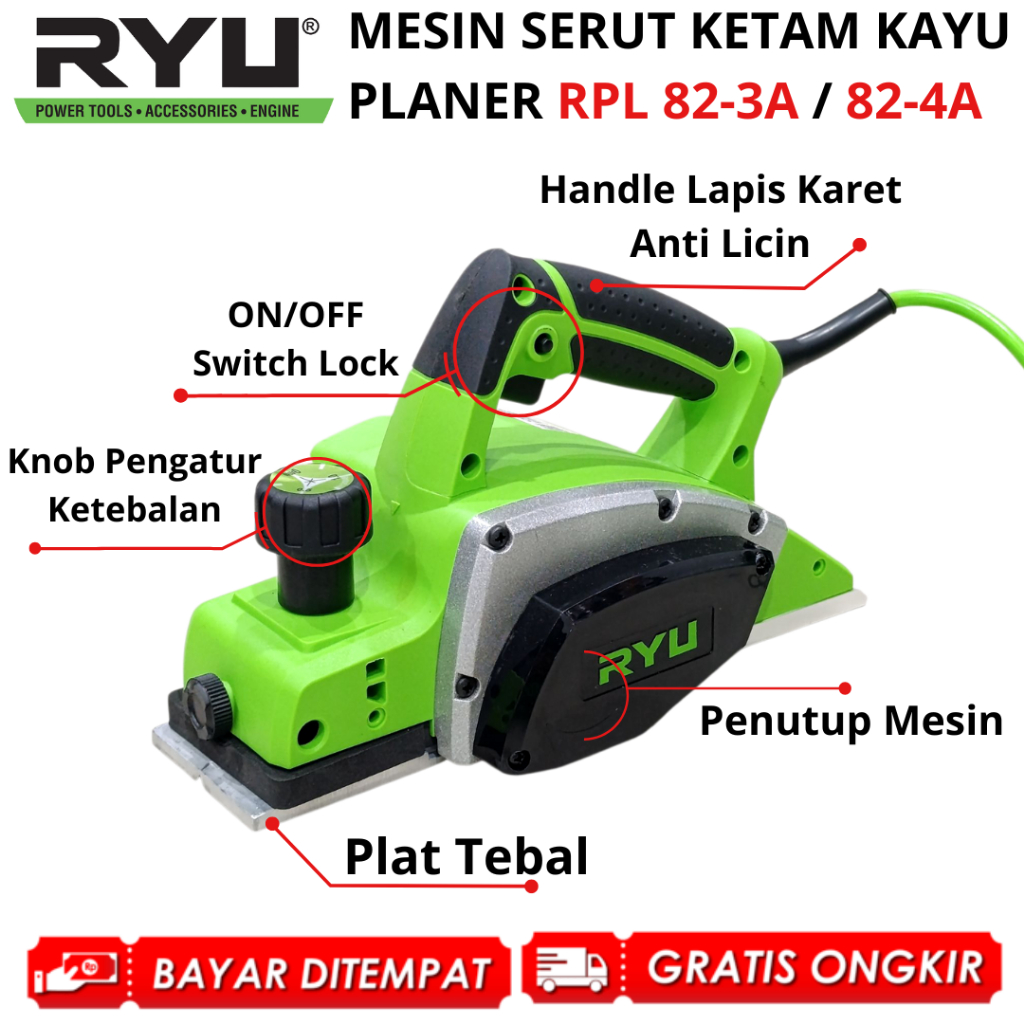 Ryu Mesin Serut Kayu Planer Pasah Ketam Sugu Rpl 82-3A Rpl 82-4A Penghalus Kayu Triplek Planner Ori