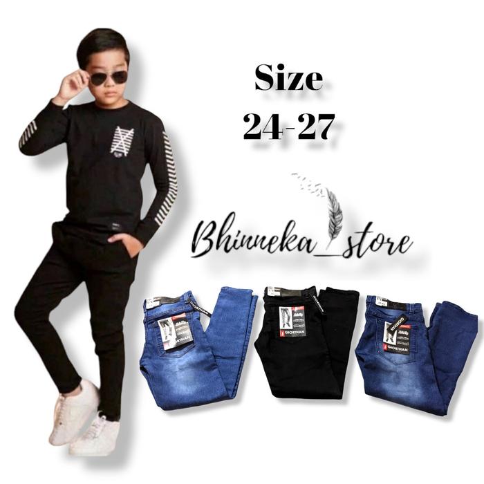 Celana Jeans Anak Umur 1-15 Tahun / Celana Anak Tanggung / Celana Jeans Anak Cowok Laki-Laki Kids - Hitam, Size 24 9-10