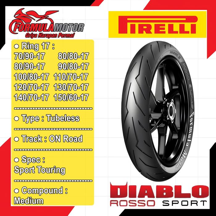Pirelli Diablo Rosso Sport Ring 17 Tubeless All Size - Ban Tubles Super Premium Motor Bebek/Sport/Moge Ukuran 70/90-17,