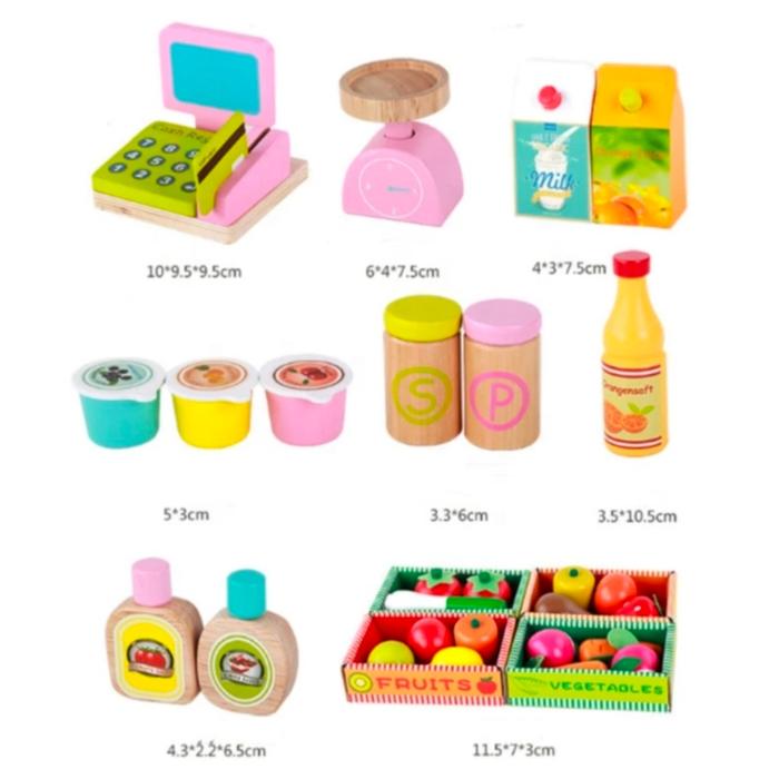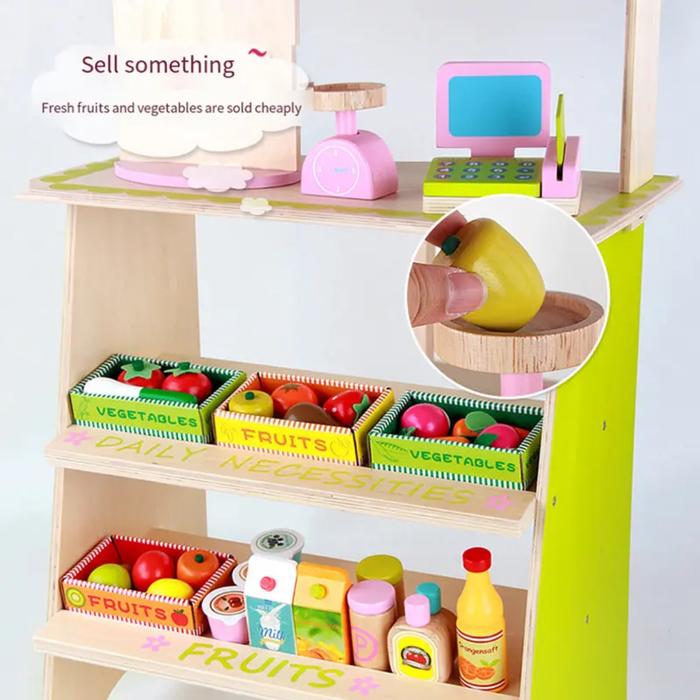 [CAPT] MAINAN ANAK PRETEND PLAY GEROBAK KASIR PASAR JUALAN BUAH & SAYUR COCOK UNTUK HADIAH - BOOTH MARKET WOODEN TOYS