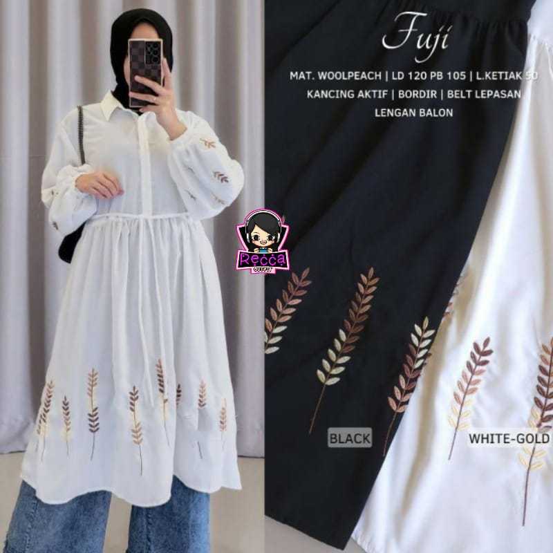 Fuji Tunik Oversize Bordir Daun Premium Korean Style Kekinian Lengan Balon LD 116 - 120 XXXL