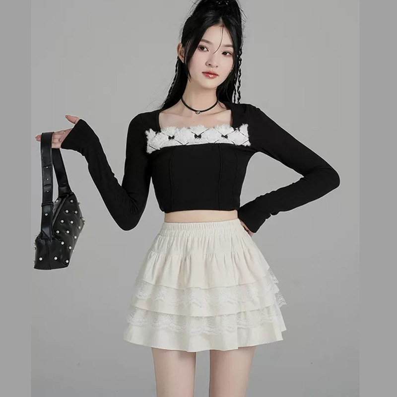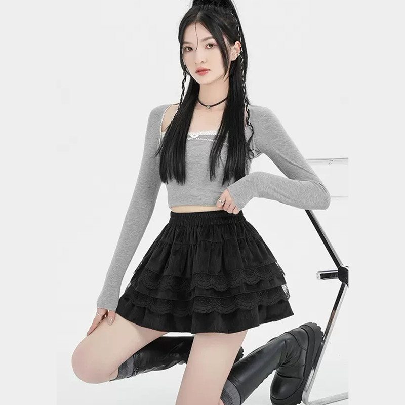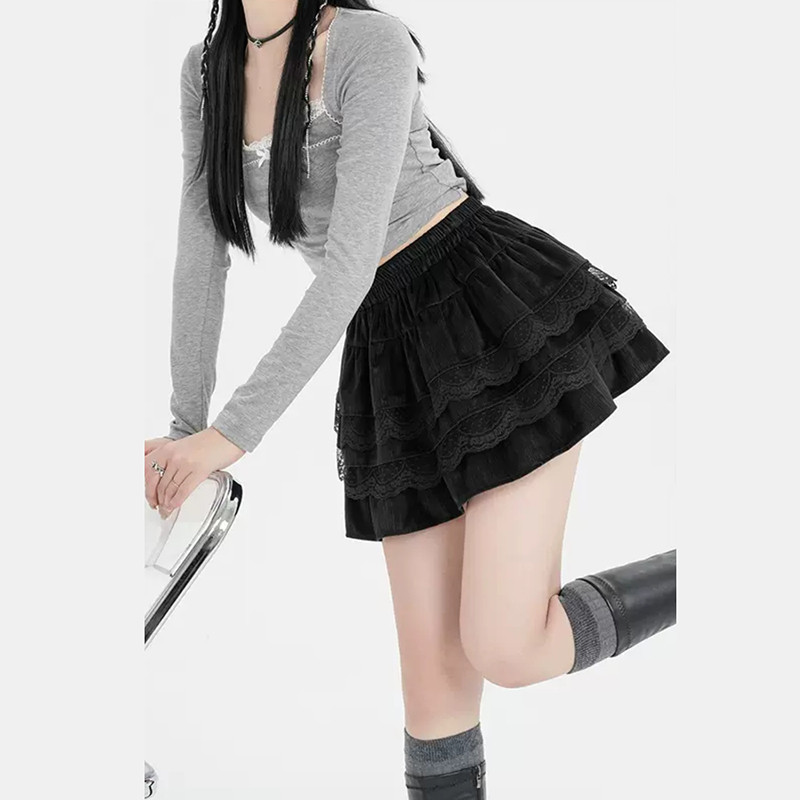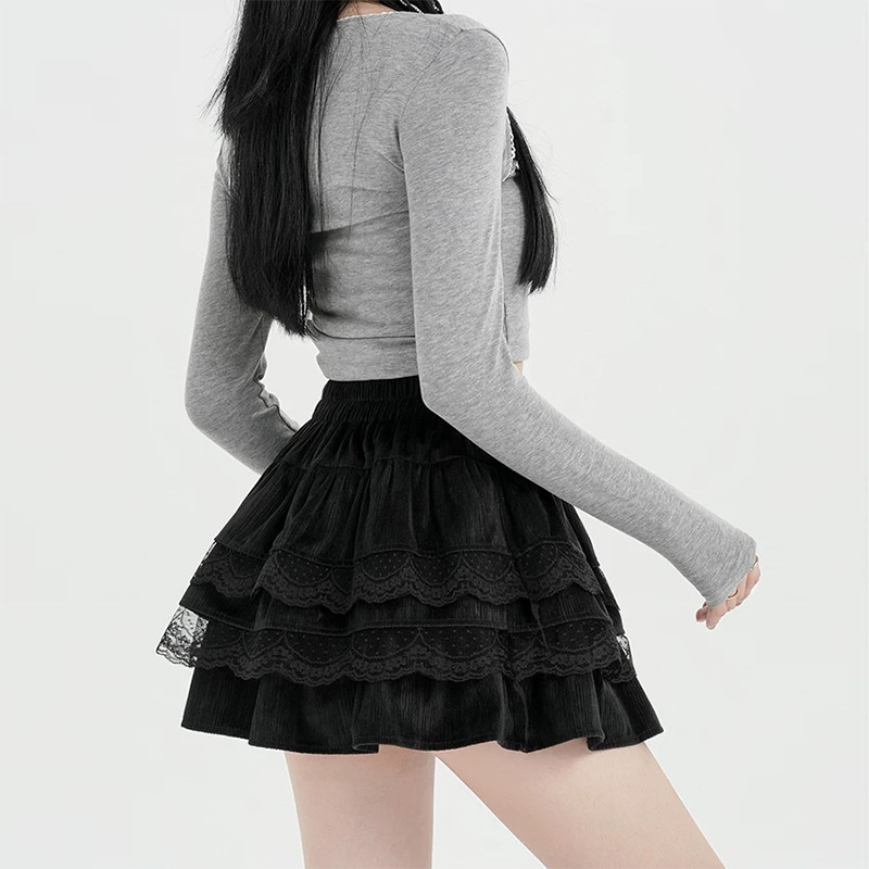 Rok Lipit Musim Panas Rok Kue Pinggang Tinggi Wanita Rok A Line Desain Renda