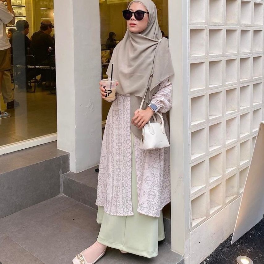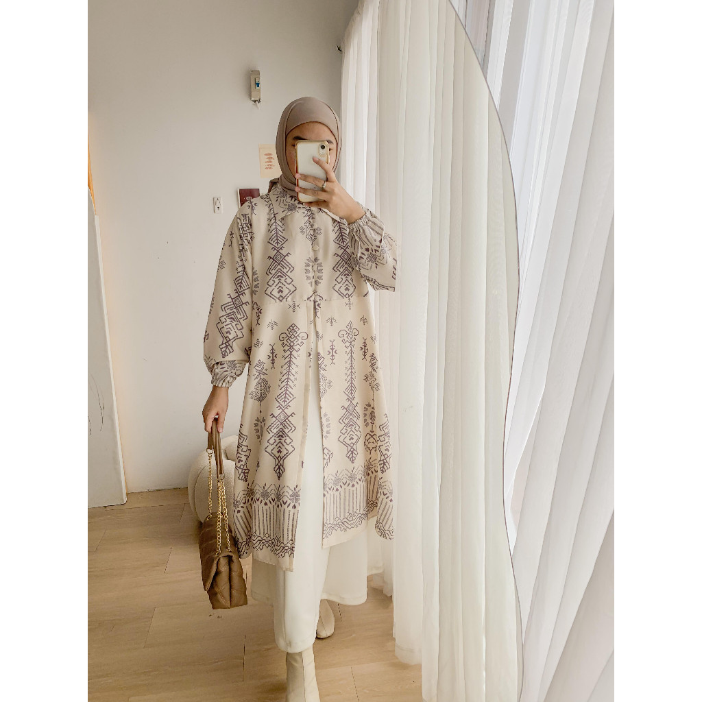 Syamaita - Tamara Outer Tunik Motif Batik ern Kancing Busui dan Wudhu Friendly Material Foam Emboss Premium Muslim