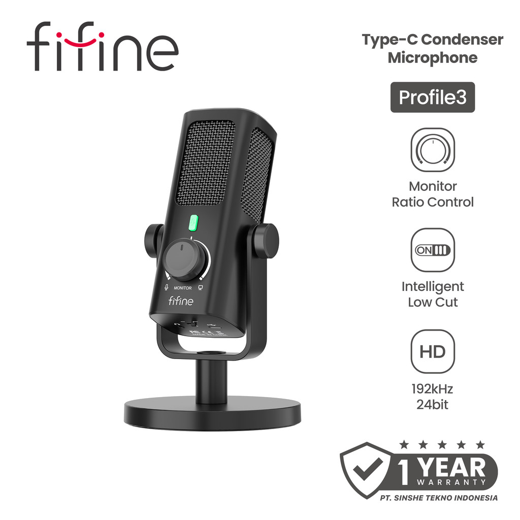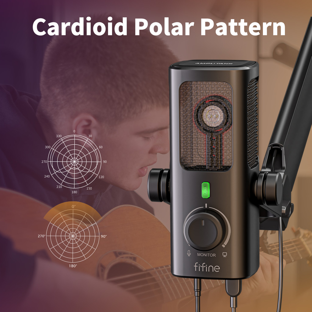 FIFINE Profile3 USB Condenser Mic – cast, Musik, Streaming + Monitoring & Low Cut