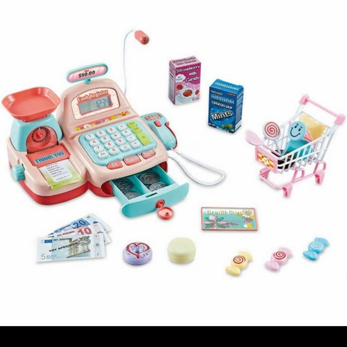 MAINAN KASIR PRETTY MISSY REGISTER SET WITH GROCERIES TROLLEY