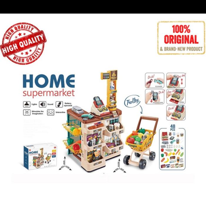 MAINAN HOME SUPERMARKET MEJA KASIR ANAK TROLLEY LITTLE PUMPKINS TOYS - MERAH