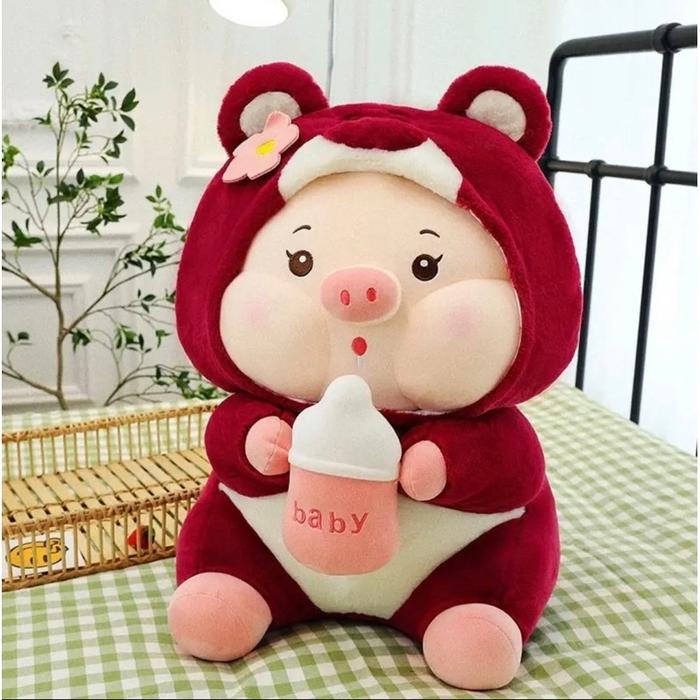 Boneka Pig Dot Hoodie 30cm 40cm 50cm Bahan Plush import Boneka Pig Dot koustum babi Buah Dolls Toys - Pig Castom 40 cm