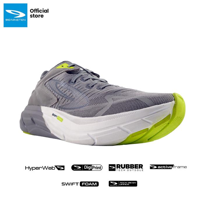 910 Nineten HIROSHI Sepatu Lari - ABU-ABU/UHIJAU-NEON Olahraga Running Outdoor