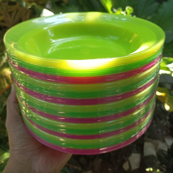 12 PCS piring plastik DX 9 inchi crystal warna stabilo transparan tebal cantik piring makan 22cm