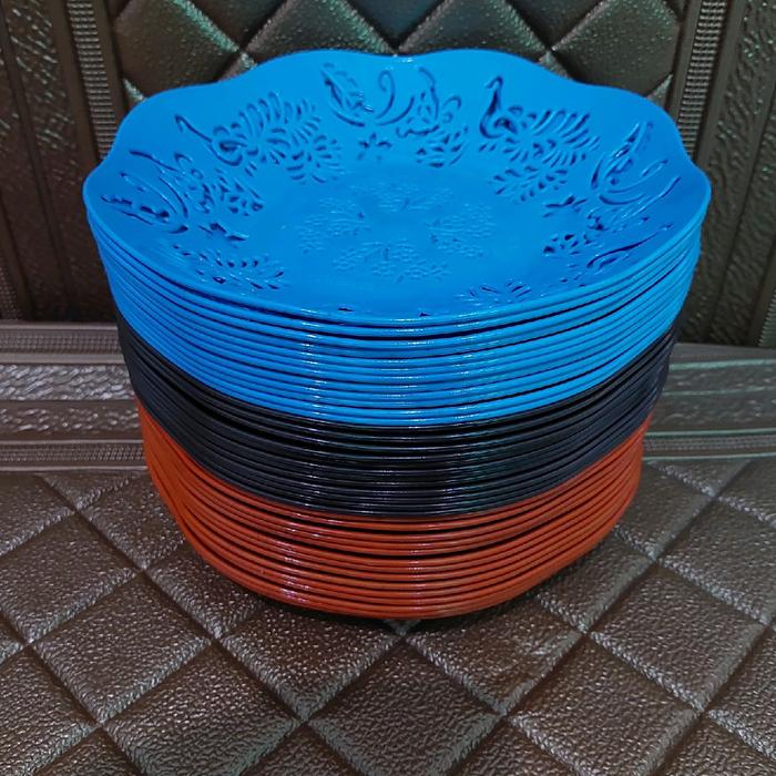 PIRING ROTAN PLASTIK " FARES 21 CM "PAKET 24 PCS + Bonus Centong Nasi,Varian warna - Kitchenware