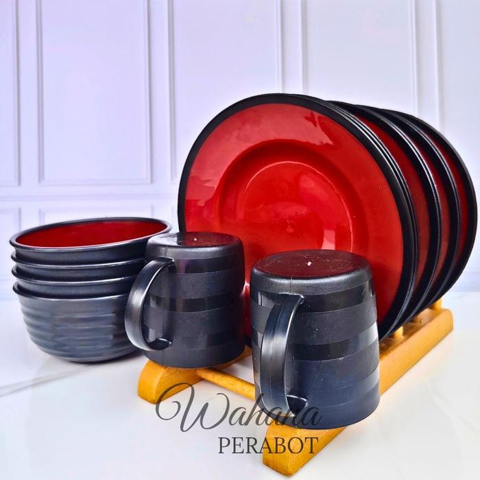SET LENGKAP RAMEN ISI 6 PCS CAMPUR 2 PIRING 2 MANGKUK 2 CANGKIR PLASTIK BPA FREE ANTI PECAH AMAN