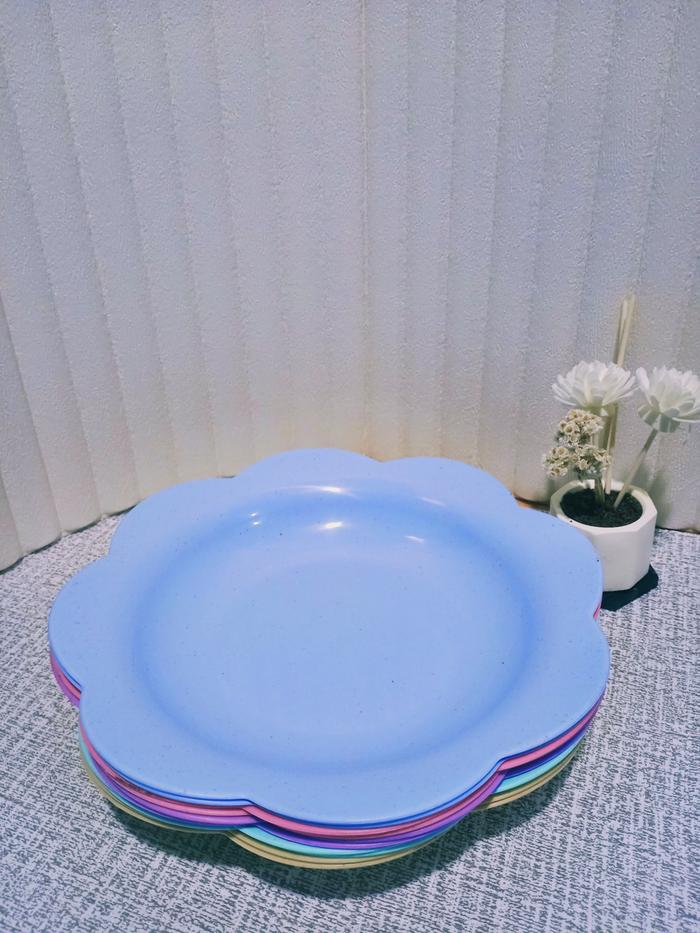 OS SET PIRING PLASTIK JUMBO PIRING MAKAN BAHAN JERAMI GANDUM MODEL BUNGA WARNA WARNI TAHAN PANAS ISI